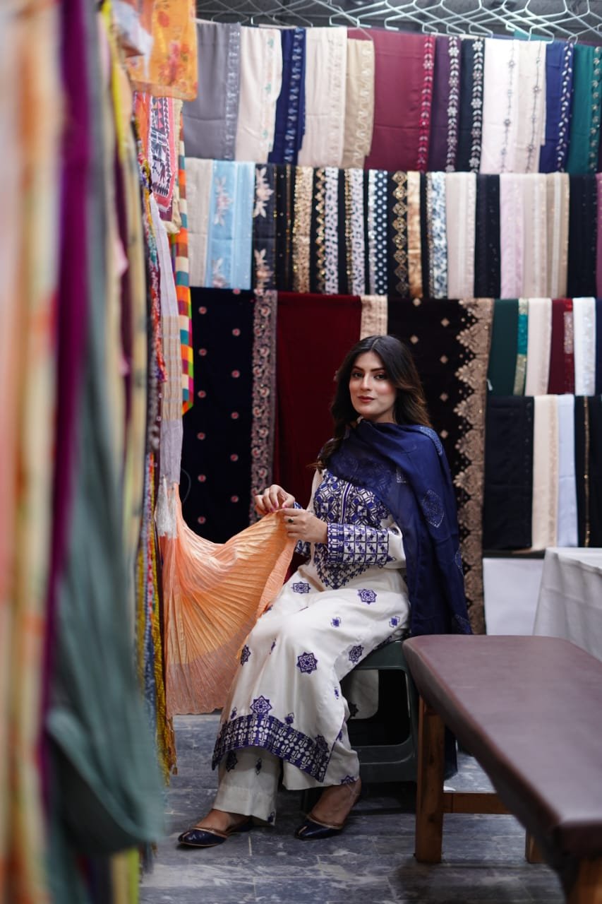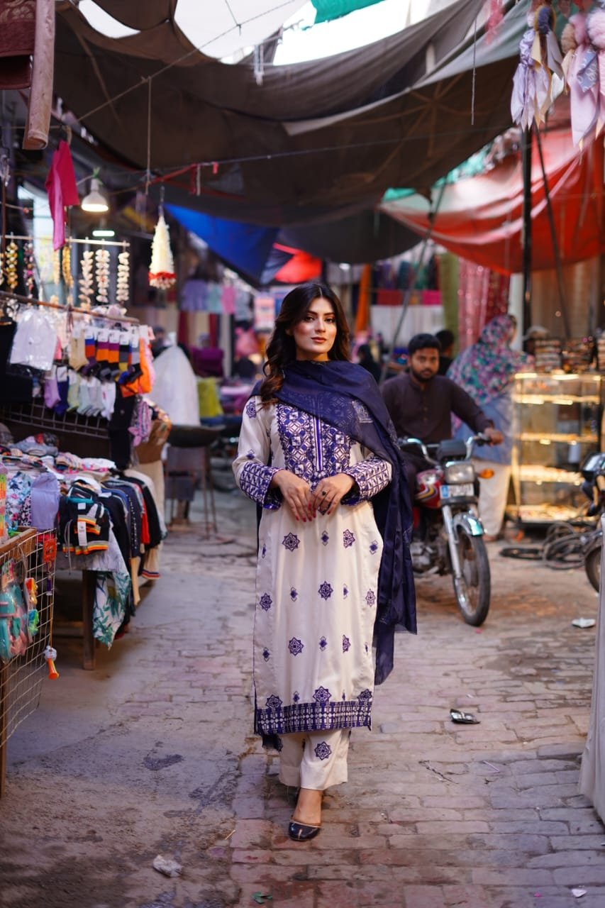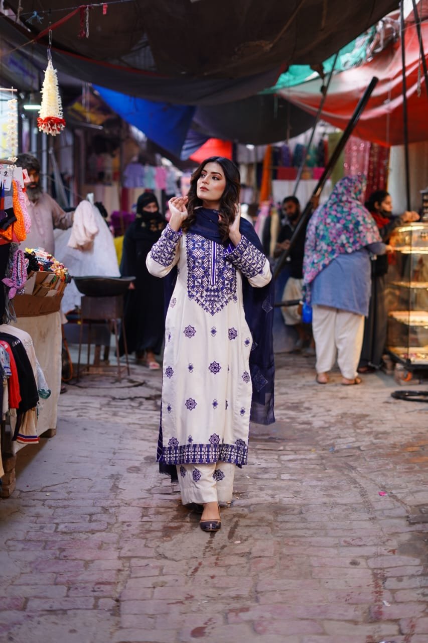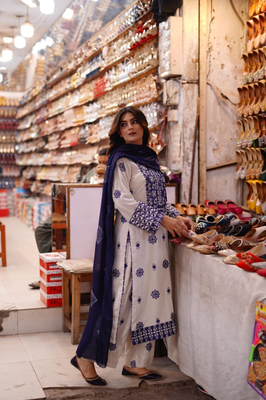 Our Winter Collection presents a luxurious 3-piece Karrandi suit, featuring high-quality Karrandi fabric for the shirt and trousers, complemented by a fully block-printed silk dupatta. This unstiched ensemble comes in a crisp white color and includes 2.5 meters of fabric for both the shirt and trouser, as well as 2.5 meters of silk for the dupatta. With impeccable craftsmanship and a classic design, this set is available at a price of 9,000.