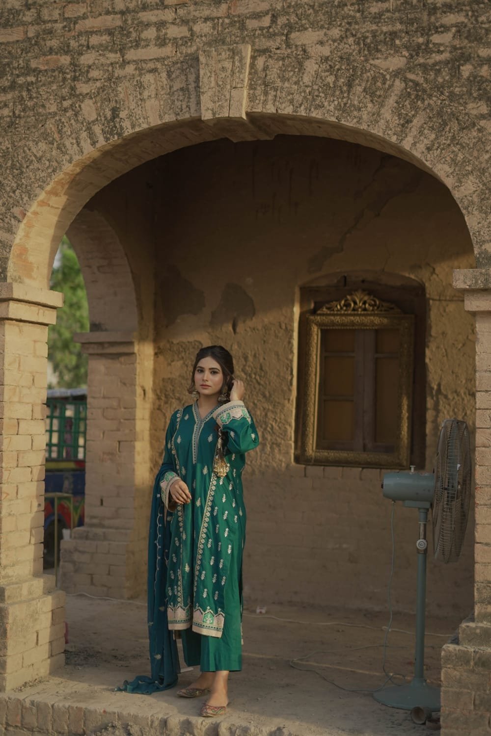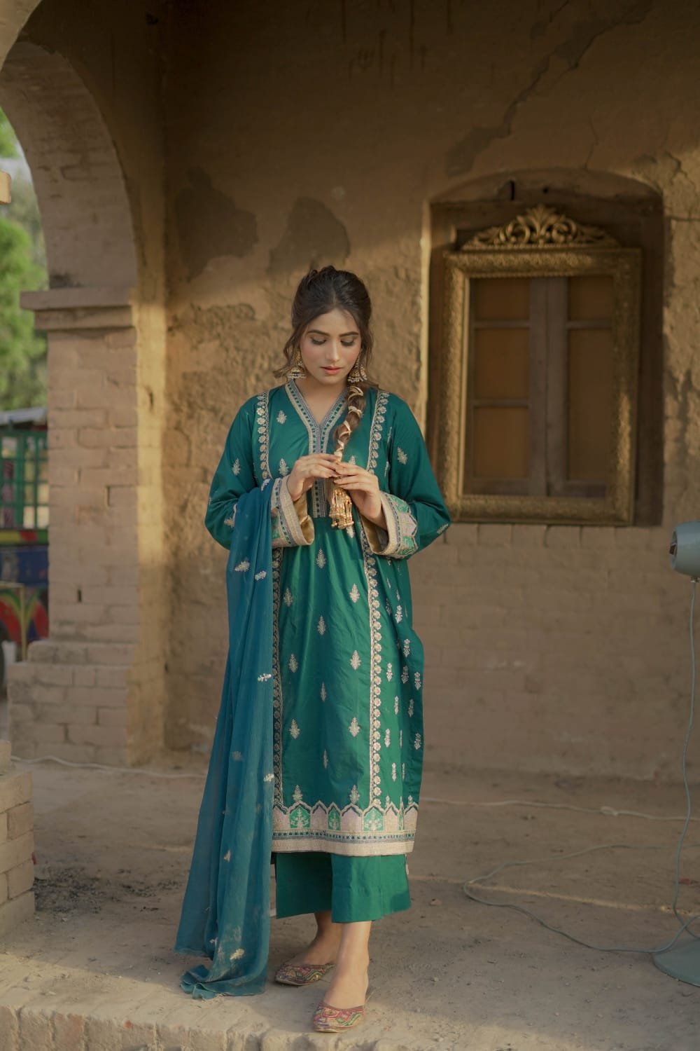 Stay effortlessly stylish with our unstitched 3-piece green lawn suit, designed for breezy summer days. The lightweight lawn fabric ensures all-day ease, paired with a blend of organza and chiffon dupattas for a soft, elegant finish. This ensemble includes 2.5 meters of fabric each for the shirt and trouser, along with 2.5 meters of mixed organza and chiffon for the dupatta. A versatile option that brings comfort and charm to your seasonal wardrobe.